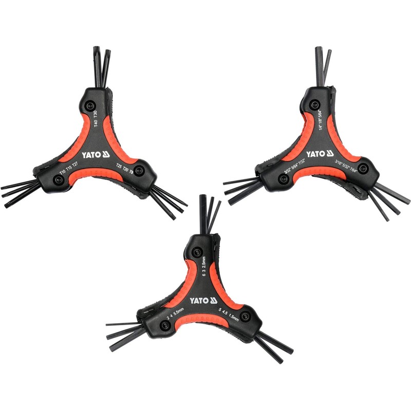 - Set includes the following sizes: Hex: 1.5, 2, 2.5, 3, 4, 4.5, 5, 5.5, 6mm - Torx: T9, T10, T15, T20, T25, T27, T30, T40, Hex: 5/64", 3/32", 7/64", 1/8", 9/64", 5/32 inches. 3/16 inches, 7/32 inches, 1/4 inches
