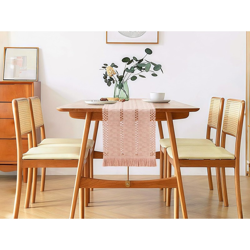 • [Fitting Size for most home decor]Our table runner with tassels is 12x71 inches, perfect for a table for 4-6 people. It can give you a rustic boho feel. (The table runner will have creases after it is taken out of the package, which will affect your measurements. We recommend that you lay the table runner neatly and flat before measuring)