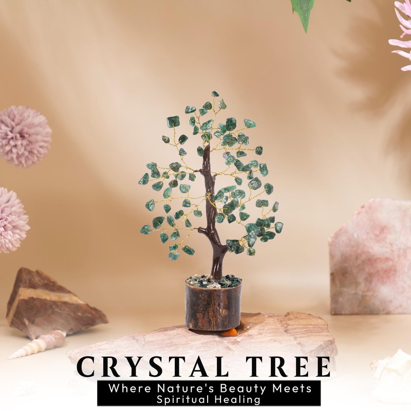 - Crystal Tree - This elegant looking gemstone tree is handcrafted with spiritual crystals and stones with the help of golden wire attached to the wooden base. The size of this this money tree statue is 7-8 inch approx. This stone money tree help to attracts wealth, prosperity and abundance in to your space.