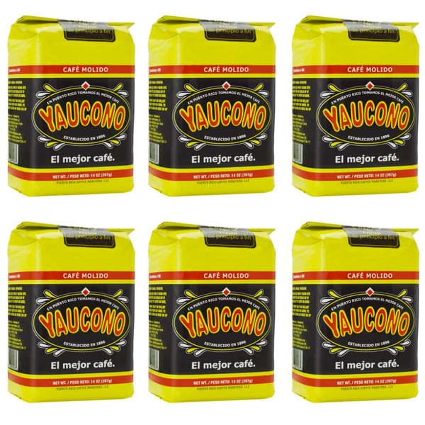 Yaucono Ground Coffee Bagged, 14 Ounce (Pack of 6)