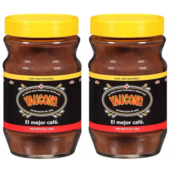 Yaucono Instant Coffee, Medium Roast, Arabica, from Puerto Rico, Glass Jar, 8 Ounce (Pack of 2)
