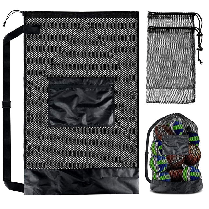 - Yauhar 3Pcs 30” x 40” Extra Large Team Work Ball Bags with Adjustable Shoulder Strap and 12" x 7.5" Nylon Mesh Drawstring Bags for Holding Soccer, Basketball, Football, Baseball, Volleyball, Swimming Gear