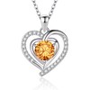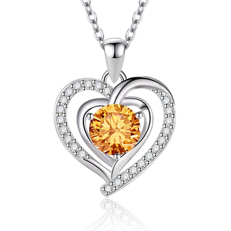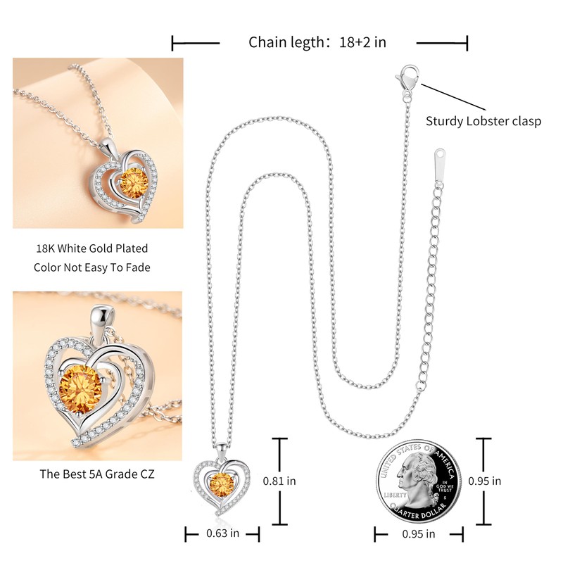 Yaumatea Heart Necklace, I Love You Always & Forever, Birthstone Cubic Zirconia Pendant, Gift for Women (Double Heart, Silver 11 Nov)