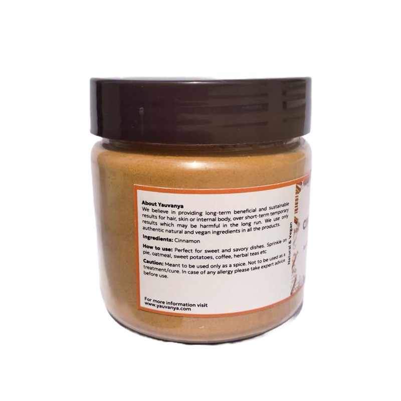 Yauvanya Cinnamon Powder - 100 gms | Vegan | 100% Raw | Gluten Free | Sourced from India | For Cooking, Baking, Tea, Latte