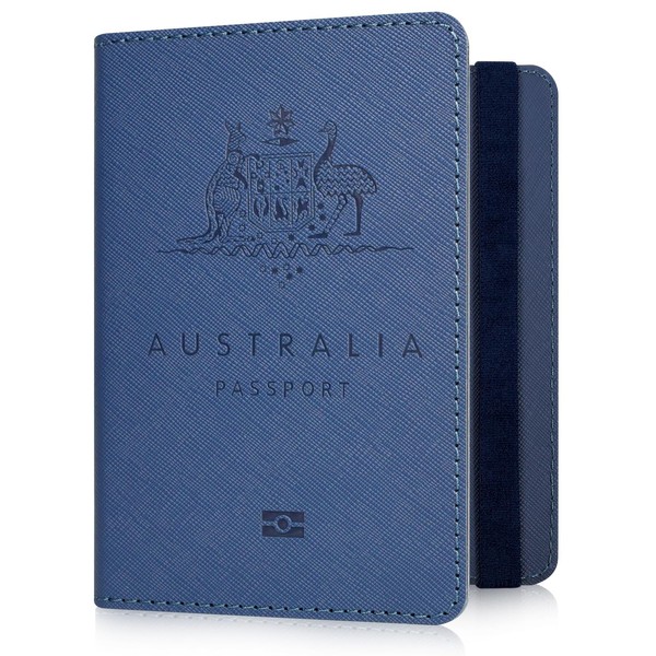 YAVIV Passport Holder for Women and Men, Premium Leather Travel Passport Wallet RFID Blocking Passport Cover, Blue