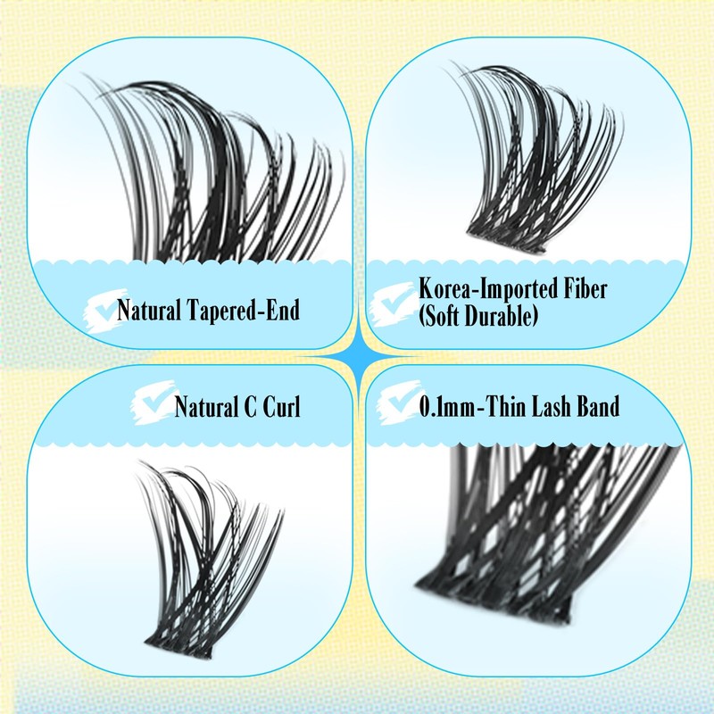 - Feather-light Comfort: C curl cluster eyelash extensions are made from soft, flexible fiber, ensuring so comfortable you’ll forget they’re on while giving eyes a magical, elongated appearance that enhances natural beauty without heaviness or irritation– perfect for work, dates, or parties.