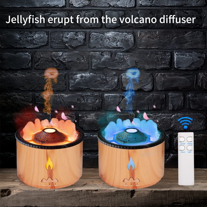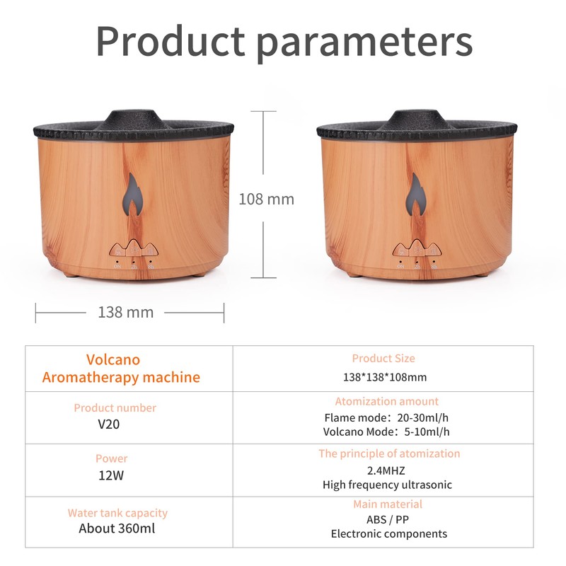 - 【360ml Water Tank Supporting 12 hours Atomization】This ultrasonic aromatherapy diffuser is perfect for use in your home, bedroom,office, or any other space. essential oil diffuser features a large tank that can hold up to 360 milliliters of water, and it comes with a remote control that allows you to easily choose between the volcanic eruption cloud and flam burn modes. Additionally, oil diffuser features a red night light and a blue night light to create a relaxing atmosphere.