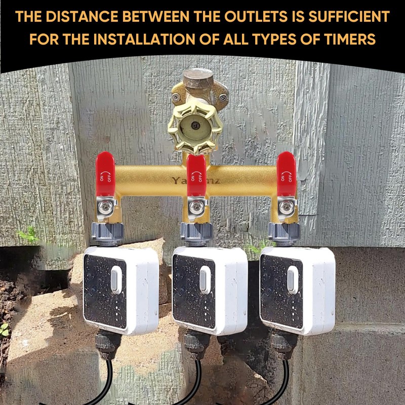 - 2: We have widened the distance between spouts for installations designed to use multiple garden irrigation system timers at the same time, as well as for a wide variety of commercial faucets, waterers, hoses and other large tool dispensers, providing more flexibility and convenience for gardens, bathrooms and other settings. Spout spacing is 1.77 inches.