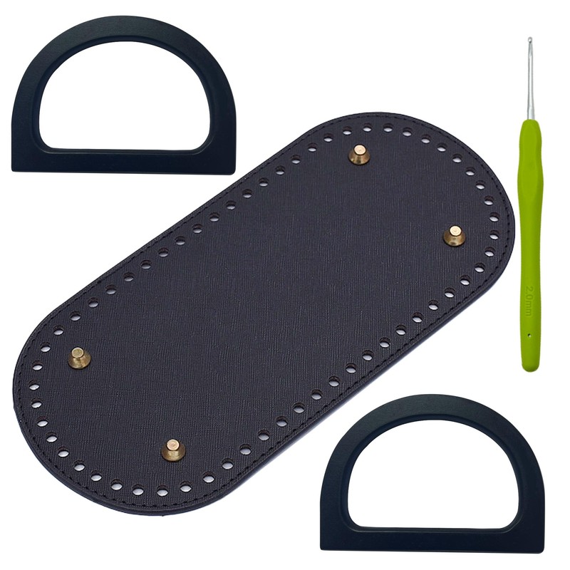 Yayatty Crochet Bag Base 1 Piece Crochet Bag Base with 2 Pieces Bag Handles Wood Oval Leather Bag Base Bag Crochet Accessories for Crochet Tote Bags Bag Handle (Black)