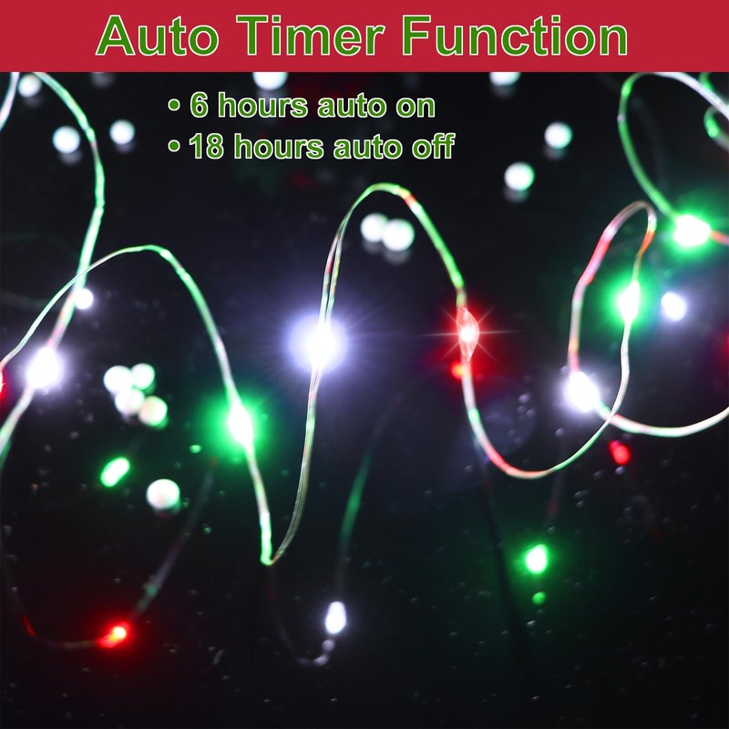 Yayfazy Christmas Lights Indoor Battery Operated, Red White Green Mini Copper...