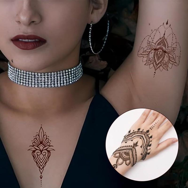 YAYNO Pack of 3 Henna Tattoos, Temporary Tattoos, Temporary Tattoo Stickers, Henna Brown Freckles Henna Red Brown with Henna Tattoo Stencil