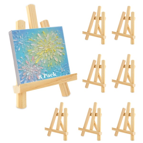 YAYODS 8 Pack 7 Inch Wooden Display Easel for Painting, Small Wood Easel Stand for Display Tabletop Wood Tripod Easel for Small Canvases Holder, Photo, Picture, Plate