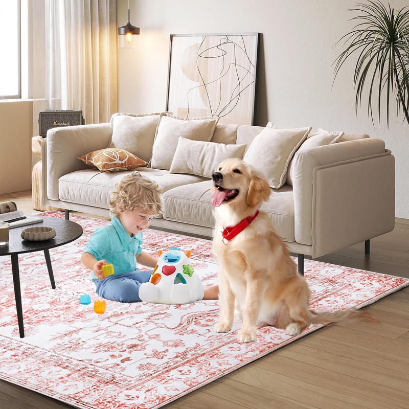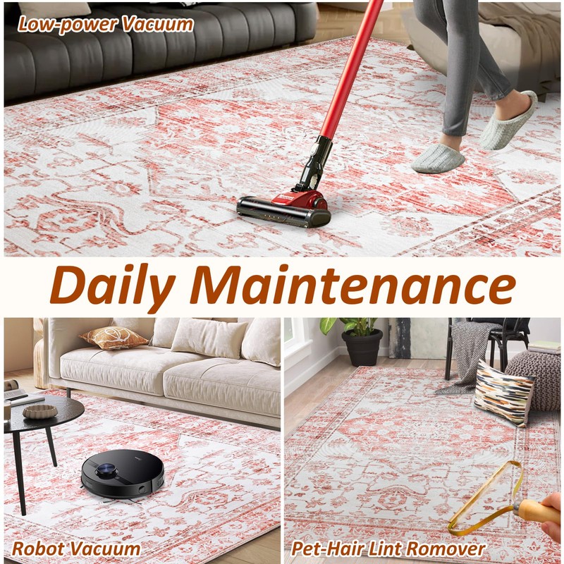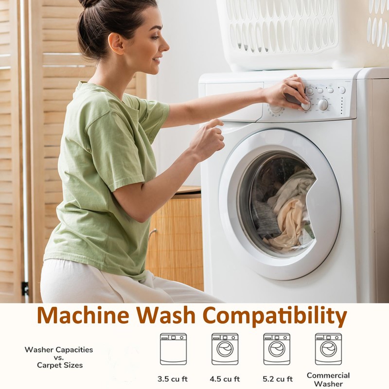 - 【Machine Washable】This is a totally machine washable area rug, making it much more convenient to clean and useful for houses with children and pets. Even when kids and pets make a mess,the low soft pile of this 5x7 rug keeps most dirt on the surface, simply sweep, shake, vacuum, or let a sweeping robot handle it. Can be washed in a 3.5-5 cu.ft.washing machine or cleaned with a sweeper and vacuum