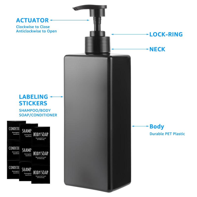 - Packaging: you will receive 6 bathroom soap dispensers with the size of about 6.3 x 4.5 x 15 cm and the capacity of 500 ml, 6 separate labels for body soap, shampoo, conditioner allow personal setup - flexible, as your daily needs vary.