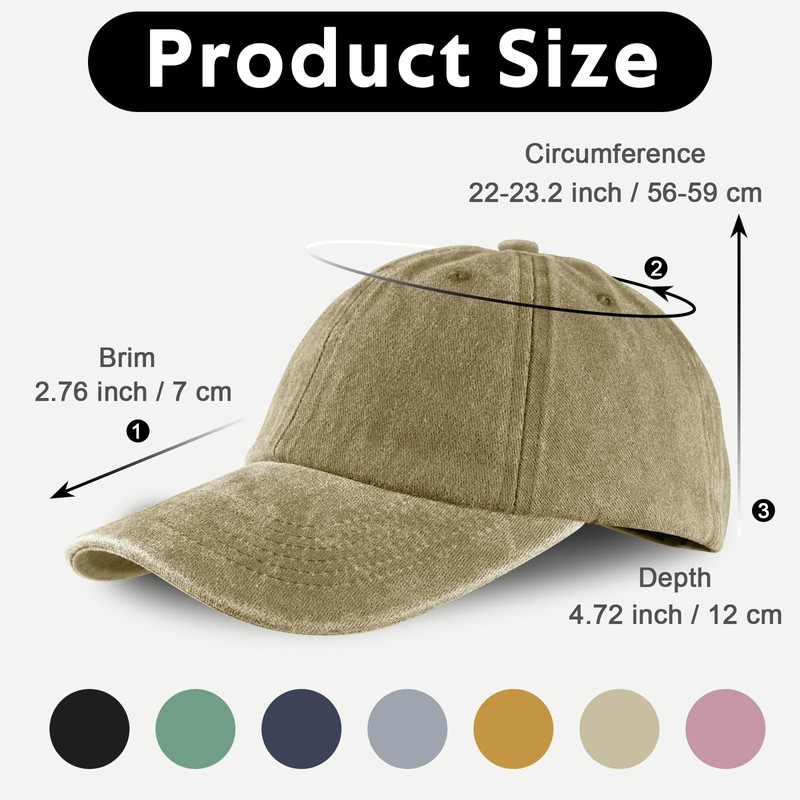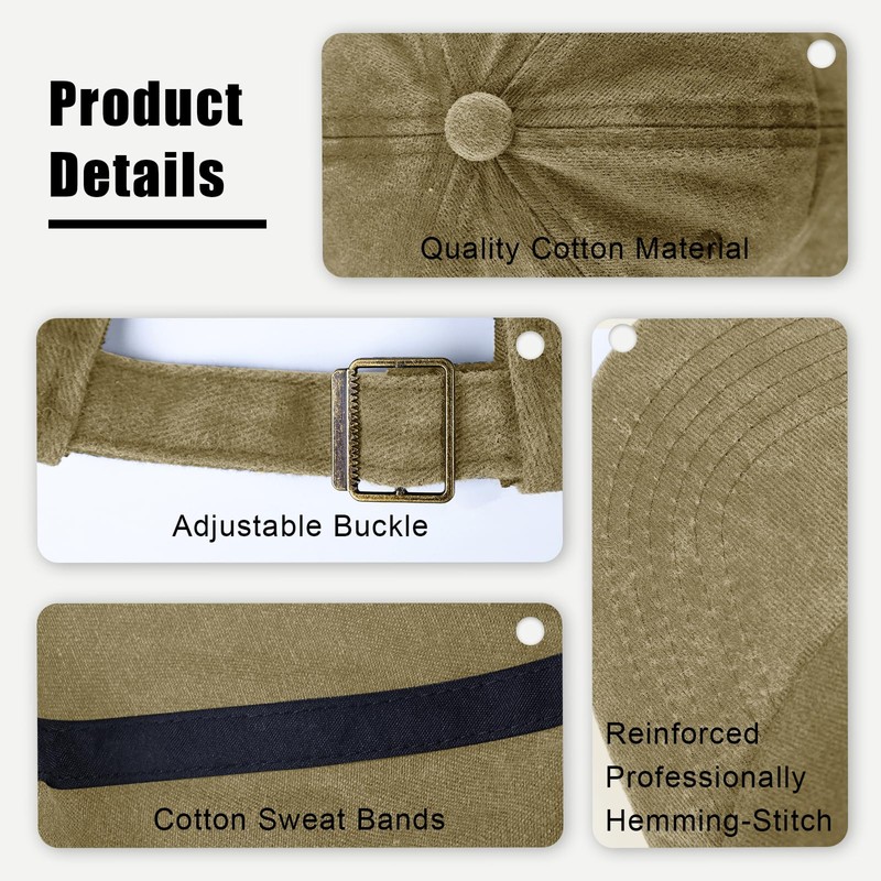 - Washed Cotton Material: Vintage plain washed baseball caps made of washed cotton material. Can anti-UV, inside the hat made cotton sweat bands, 6 air holes at the top, which can effectively absorb sweat and breathable, soft comfortably