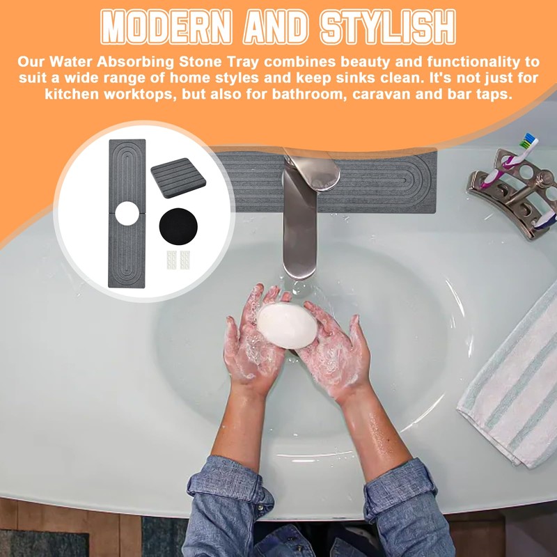 The small pores of the diatomaceous earth rock are incredibly absorbent. Drip mat sink absorbs spilled water quickly and dries by itself within a few minutes. Say goodbye to annoying drops and stay dry!