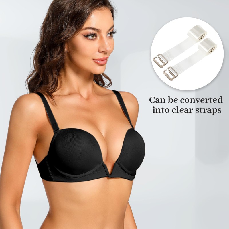 - The deep v push up bra with underwire and padded design provide excellent lift and support, instantly adding two cup sizes to your natural shape. Enjoy a stunning and alluring cleavage that will turn heads wherever you go.