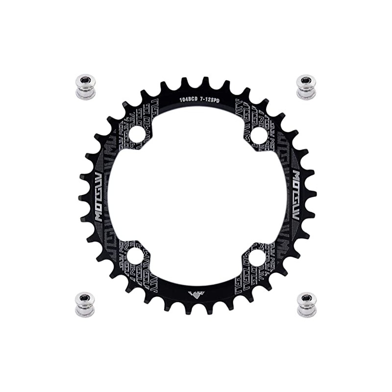 YBEKI 32T 34T 36T 38T 40T 42T 44T 46T 48T 50T 52T Chainring 104BCD Round Oval Narrow Wide Single Bike Chainring for 8 9 10 11 Speed Mountain Bike Road Bike MTB BMX (Black round, 44T)