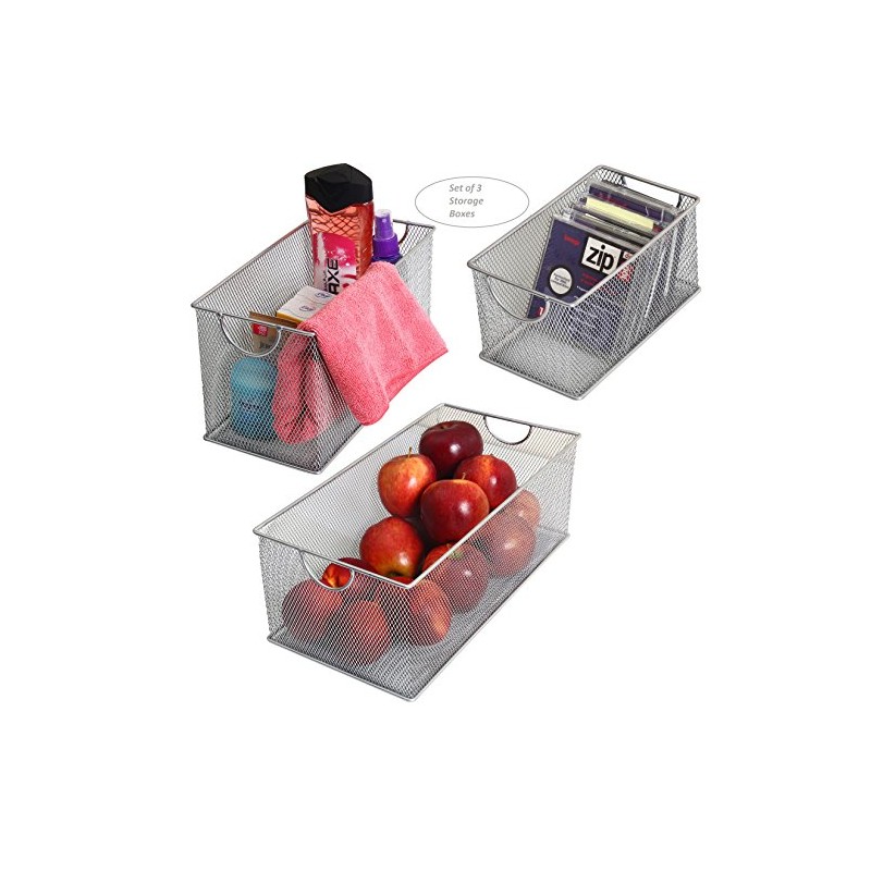 YBM Home 2320-3 Set of 3 Mesh Storage Boxes, Silver Mesh