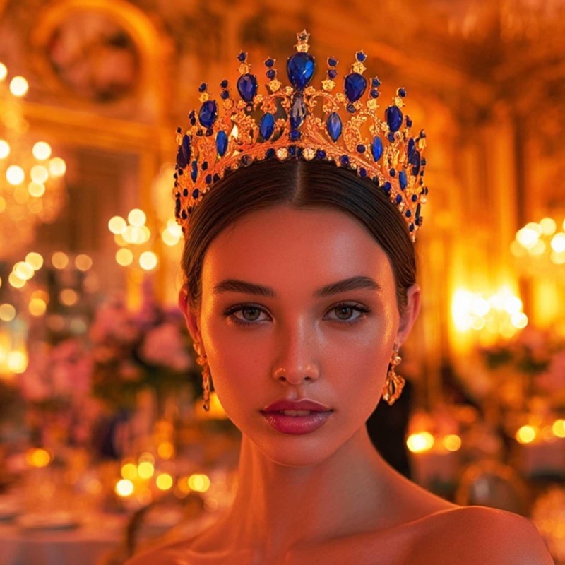 - Gold tiara is made of metal alloy, crystals and gemstones ,no skin irritation and comfortable enough for (long wear)extended wear during events。