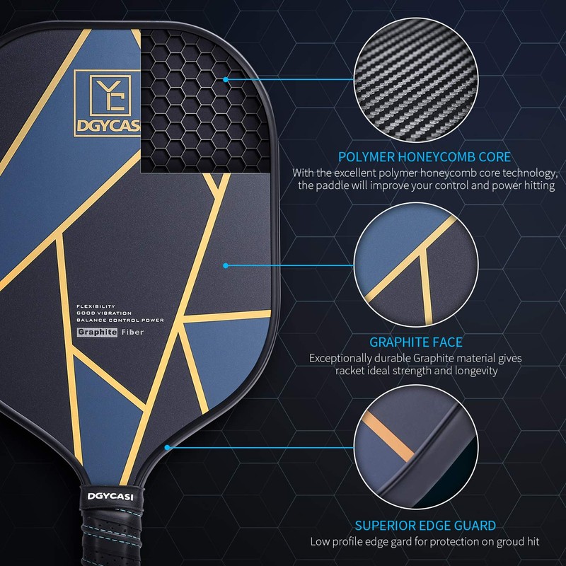 - 【Features brought by the material】Our racket us honeycomb composite polymer core, which has ideal strength and rigidity, and is light in weight, provide nice bounce, reduce ball deflection,which improves your pitching performance.The YC DGYCASI pickleball paddle strikes the perfect balance between great gameplay, control, and power.