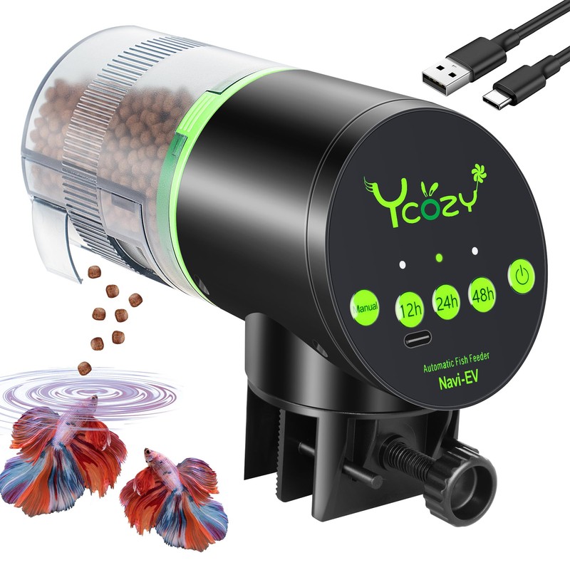 Ycozy Automatic Fish Feeder, 2nd Generation, USB Rechargeable, Moisture Proof, Time Feeder for Aquarium, Tropical Fish/Goldfish Auto Feeder, Aquarium Set, Automatic Feeder, Baiter, Navi-EVS