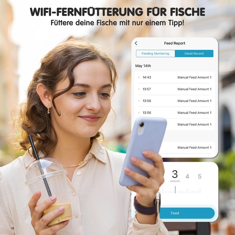 - 📱WiFi APP Fernsteuerung: Mit der WiFi-Verbindung kann die mobile App die Fütterungszeiten aus der Ferne einstellen. Alle Einstellungen werden automatisch auf App/futterautomat aquarium synchronisiert. Außerdem, wenn Strom abgeschnitten, Offline-Benachrichtigung Alarme auf dem Telefon und dann automatisch wieder verbinden, wenn Strom wiederhergestellt. (Hinweis: Das USB-Kabel muss immer an eine Steckdose angeschlossen sein, sonst kann es nicht aufgeladen werden.)
