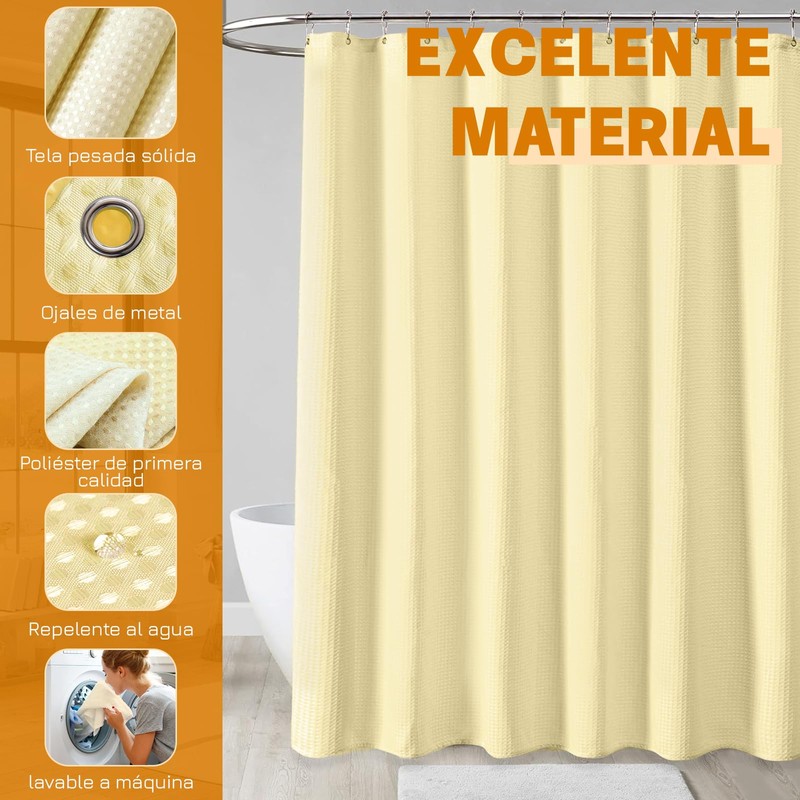 - Grado Impermeable de Lujo: Diseñado con tres capas de tejido, es impermeable, resistente al aceite y a las manchas, así como respetuoso con el medio ambiente e inodoro. El dobladillo grueso evita que se escape el calor, gran transmisión de la luz e intimidad. Nuestra cortina de ducha waffle puede lavarse en agua fría y secarse rápidamente. El tejido superresistente y el dobladillo estrecho evitan que se encoja y se deforme.