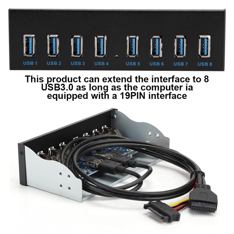 - ❥❥❥ Expand your PC's connectivity with this USB3.0 8 port hub that easily plugs into the motherboard’s 19PIN socket, providing quick access to multiple USB interfaces from the front panel.