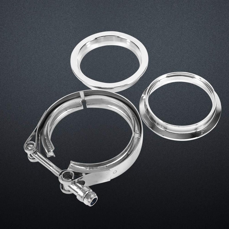 Yctze V-band clamps, silver 3 inch V-band clamp made of stainless steel with 2 flange kit, turbo exhaust down pipe for garrett 3 inch Vband, V band clamp 3 inches, V-band clamp 3 inch for V band 3 ZO