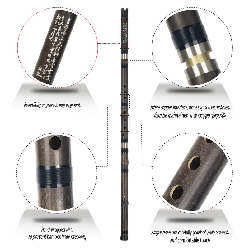 "Xiao Materials and craftsmanship: Made of high-quality purple bamboo, it has a beautiful appearance, polished surface, no paint or coloring, flat and smooth, wear-resistant and durable. The exquisite engraving on the head can better show the beauty of art. Detachable: The three-section detachable design can adjust the blowing angle and adjust the pitch, which is convenient for cleaning and carrying. The interface material is white copper, which is wear-resistant and durable and not easy to rust. Xiao: Xiao of the flute is full and round, soft and elegant, crisp and melodious, and extremely expressive. It is suitable for classical music, traditional music, modern music and other styles. The flute is a traditional Chinese musical instrument and an important part of the orchestra. Suitable for people: Beginners, adults, music lovers, orchestra performances Accessories: An musical instrument bag, a velvet bag, a lotus pendant, a fingering chart, two cleaning cotton, a cleaning cloth"