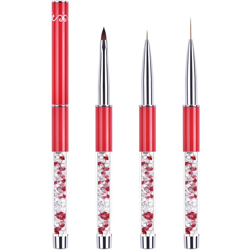 Ycyan 3Pcs Nail Art Brush Set Rhinestone Handle Gel Polish Nail Art Design Brushes, Nail Art Liner Brushes 7&15 mm and Nail Drawing Brush for Salon and Home DIY Manicure (Red)