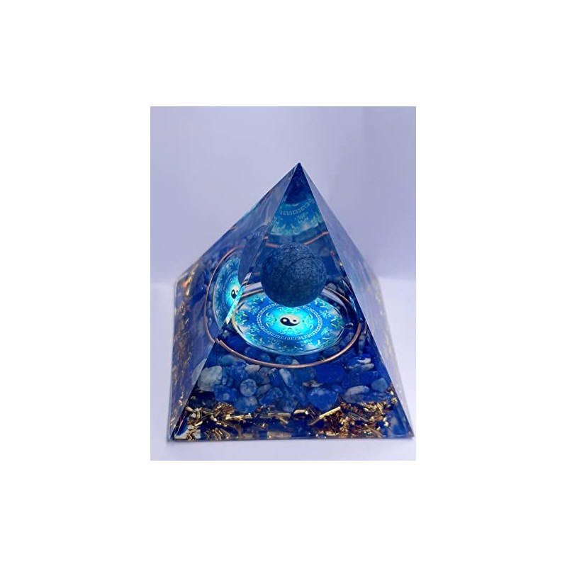 ycyingcheng ycyingcheng Moonstone Crystal Orgone Pyramid, Lapis Lazuli Ball Tai Chi, Ogan Crystal Energy Tower, Nature Reiki Chakra Crushed Stone Jewelry, Crystal Pyramid, 6CM