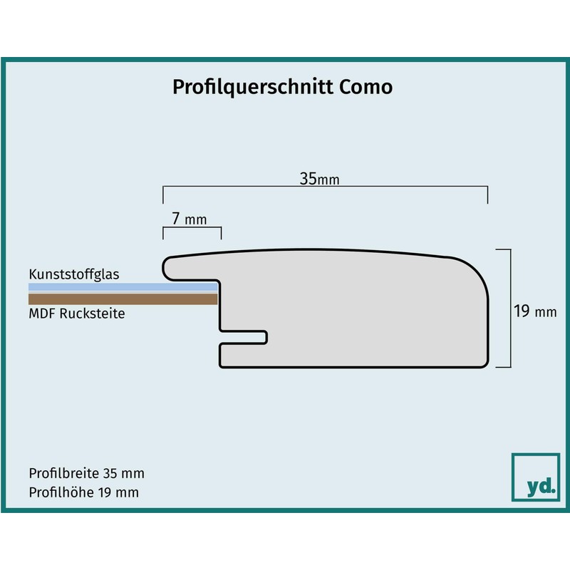 - Material: the picture frame is made of MDF with an anti-reflective plastic glass (1 mm). The plastic glass is UV-resistant (no discolouration caused by sunlight) and anti-reflective. The glass plate is equipped with a scratch and transport protective film on both sides, which you need to peel off from the glass. The picture frame has an MDF backing board. An insert sheet or mount is not included.