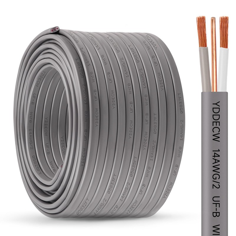 YDDECW 14/2 UF-B Wire - 150FT 100% Pure Copper 10AWG 2 Connector Direct Burial Electrical Cable for Underground Feeder Wet or Corrosive Locations Indoor & Outdoor etc