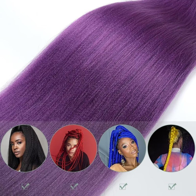 - [Pre stretched Braiding Hair Material]:Purple pre stretched braiding Hair is made from high-quality low-temperature flame-retardant synthetic fibers.