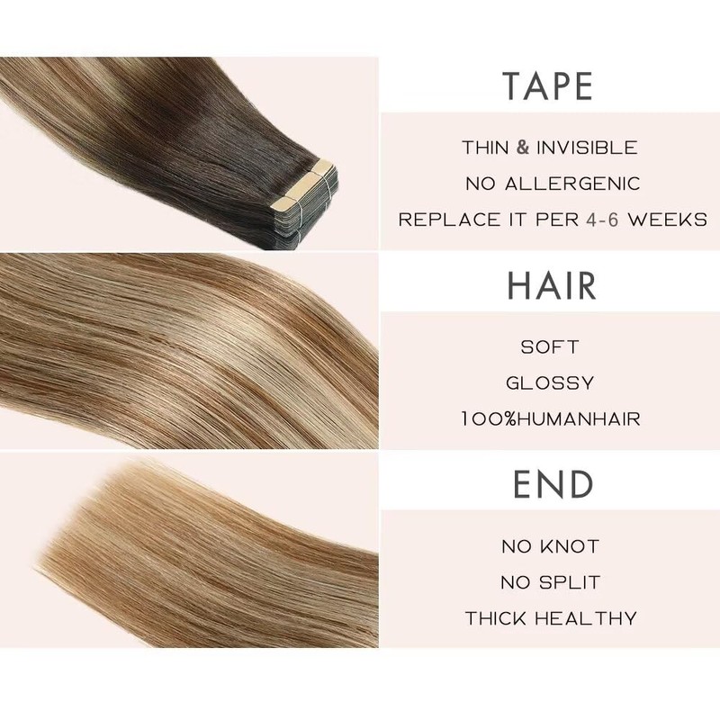 - 2. Advantages: Easy to install and remove. After using tape-in real hair extensions, you can straighten it, curl, colour, bleach and design your hairstyle as you like.