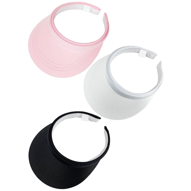 Ydocqli 3 Pack Black White Visor Women Men Clip On Visor Sun Beach Golf Unisex Cap Outdoor Sports Travel Hiking Adjustable Wide Brim Pink Ladies Visor Hat