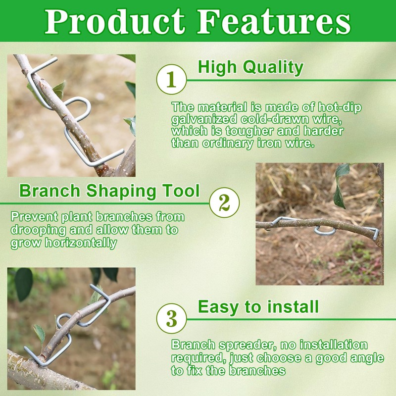 - 🍀【Clever Design】: The M-shaped fruit tree squeegee pulls the branches apart for better sunlight absorption, ventilation and fruiting. Do not let the young branches rise or hang at an angle that is too large to allow them to develop horizontally, resulting in unexpected results