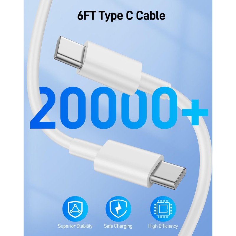 - 6FT USB C to C Cable: The cable automatically matches the required current of the devices, and the multifunctional protection technology prevents overheating, over-current, over-voltage and short circuit to ensure the safety of the connected devices