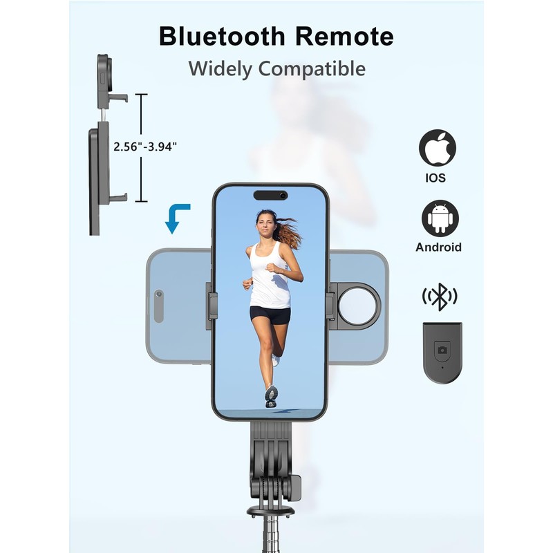 - Pocket Selfie Stick with Bluetooth9.3 oz and 8.8" when closed. Small and light, enough to fit in a wallet, backpack or suitcase. Equipped with a detachable bluetooth remote control, the wireless connection range can reach 33 feet.
