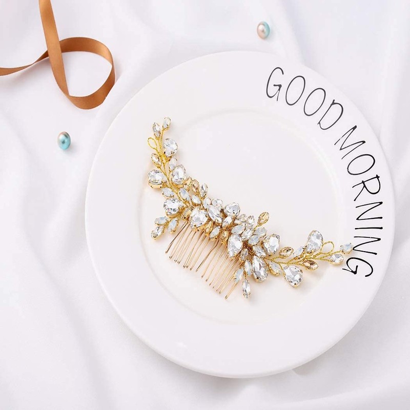 Yean Bride - Peine para el pelo de cristal de ópalo para boda con diamantes de imitación para novia