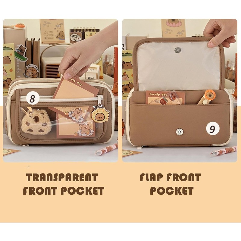 Organice sus suministros de escuela o oficina en la mayoría de.Adorable sendero con la caja de lápiz Capybara..Esta bolsa de lápiz de gran capacidad presenta 10 compartimentos, proporcionando un amplio espacio para todos sus elementos esenciales..Con su lindo diseño de Capybara e incluidos accesorios como alfileres, lujos, pegatinas, un llavero y un bloc de notas, este estuche lápiz es funcional y divertido..