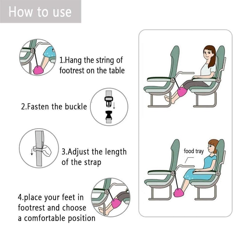 - 【Ergonomic Airplane Foot Rest for Enhanced Comfort】 Elevate every journey with our travel foot hammock designed for long-haul flights. This airplane footrest relieves pressure on legs and lower back through optimized 15° elevation, mimicking first-class comfort. Adjustable straps secure it to tray tables (16"-21"), transforming cramped seats into relaxation zones.
