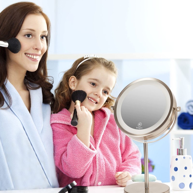 - 【Great Gift Idea and Widely Use】The Magnified lighted Makeup Mirror is a great idea for gift, especially for Christmas, New Year, Mothers' day, for sisters, wives, girlfriends, makeup artists. 5X magnifying vanity mirror suitable for bedroom, bathroom, hotel and travel. It is not only a professional makeup mirror, but also can be used as a desk lamp and night light.
