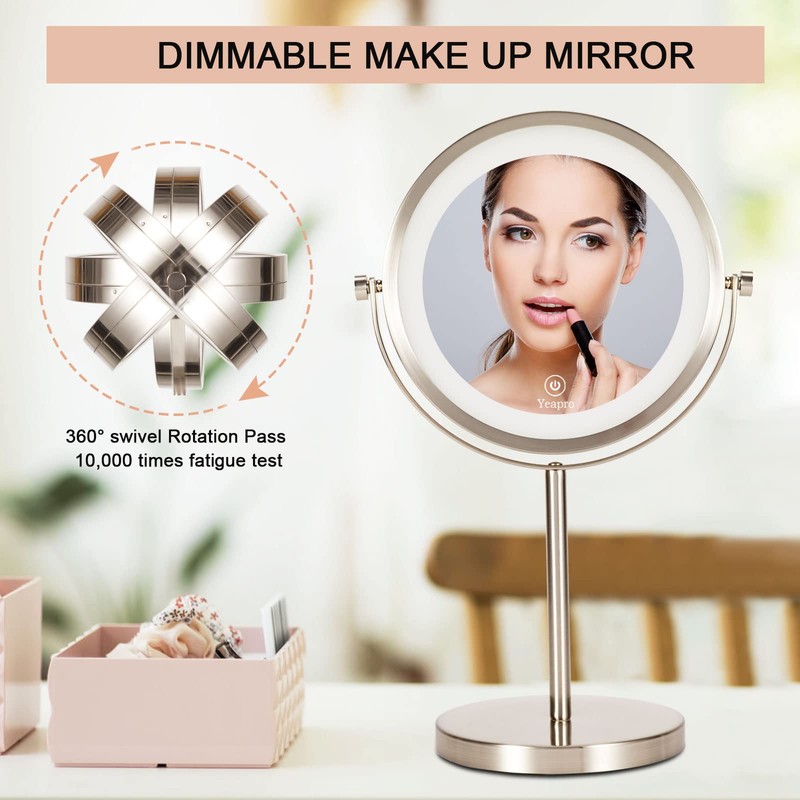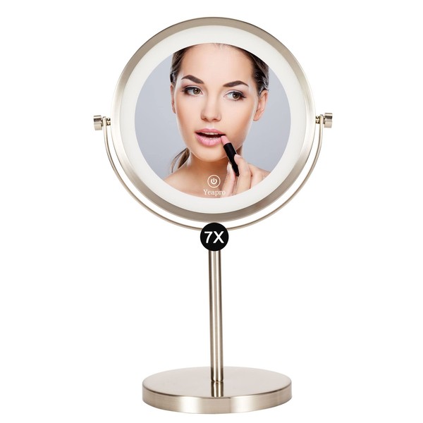 - 【7X Magnifying Makeup Mirror】Double-sided LED Makeup Mirror design1x /7x. Easily rotate to the 5X magnifying side can ensure zoom in on every facial details without distortion. So you can enjoy meticulous makeup and skincare.Both sides are ideal for everyone applying makeup, wearing contact lenses and eyebrow tweezing, shaving, hair styling, facial care or applying mascara.
