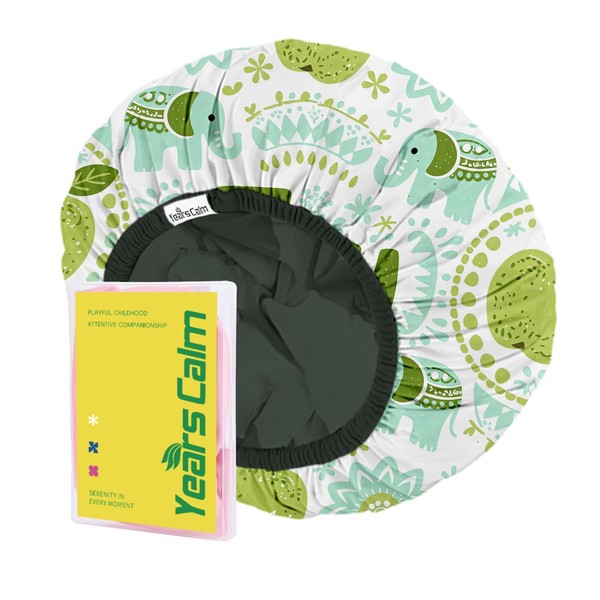 Color: Elephant Green Material: Waterproof Memory Cotton Size: Outer Diameter: 11 in (28 cm); Inner Circle: 5.3 in (13.5 cm) Elastic Band: Soft and flexible, fits snugly without leaving red marks Features: Double-layer waterproof design Reversible: Cartoon print side & solid color side Product Design Concept: The Years Calm kids shower cap combines imaginative design with practical protection. Made of waterproof memory cotton, this kids shower cap waterproof provides a breathable barrier against steam and splashes,softer and safer than any plastic baby shower cap or small shower cap. Designed as a shower cap for kids, it is ideal for daily kids bath routines. Its reversible style gives children two looks in one: a cartoon shower cap with playful Jungle Dino or Joy Elephant print on one side, and a simple solid color on the other. This kids shower cap reusable waterproof design is perfect for children who like options, whether it’s a girls shower cap or boys shower cap. Elastic Fit Comfort: The flexible band ensures this shower hat for kids stays in place,no slipping, pulling, or red marks. Comfortable for active little ones, it’s suitable as a toddler shower cap, a kids shower cap for braids, or even a gentle shower cap for baby. Versatile Use: Perfect as a washable shower cap, this design works as reusable shower caps for children during showers, baths, swim lessons, or travel. Parents searching for kids shower caps for girls and boys will find this kid shower cap both fun and functional. It’s a trusted waterproof kids bath cap that makes hair protection easy. How to Use: Choose your preferred side of the shower cap kids,cartoon or solid. Hold the elastic edge of the kids shower cap with both hands and stretch. Place the gorro de baño para niños from the forehead to the back, tucking in all hair. Press gently to seal, ensuring this gorro de ducha para niño fits around the ears to block water. Easy to put on and take off, even for squirmy toddlers!