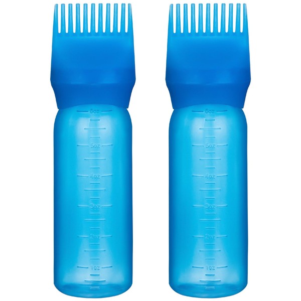 Yebeauty Root Comb Applicator Bottle, 2 Pack 6 Ounce Applicator Bottle for Hair Dye Bottle Applicator Brush with Graduated Scale- Clear Blue