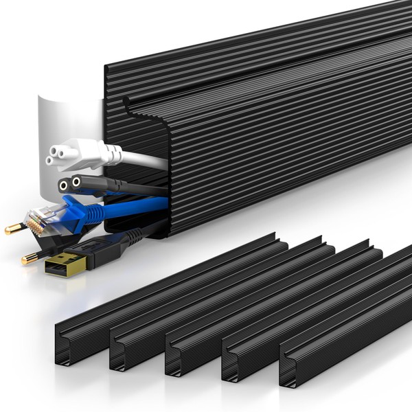 - 94-inch Under Desk Cable Raceway : Comes with 6 × 15.7-inch sections in each package. Whether you want to run the cables horizontally or vertically, these short channels will give you the flexibility needed for your project.Simply remove the film and flexibly install the wire organizer in the position you want (please note that our cord management needs to be installed on a smooth surface)