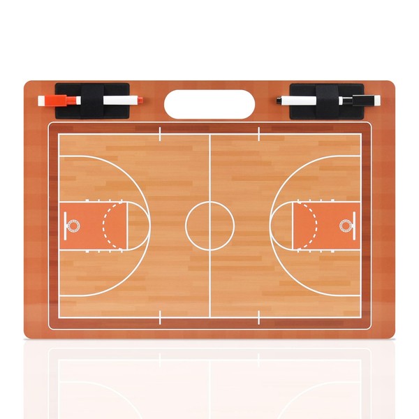 - Versatile Tactical Coaching Tool: This basketbal tactics board is designed for coaches,featuring a front side for drawing tactical layouts and a back side with a half field diagram and scoreboard,making it easy to track game scores and adjust strategies in real time